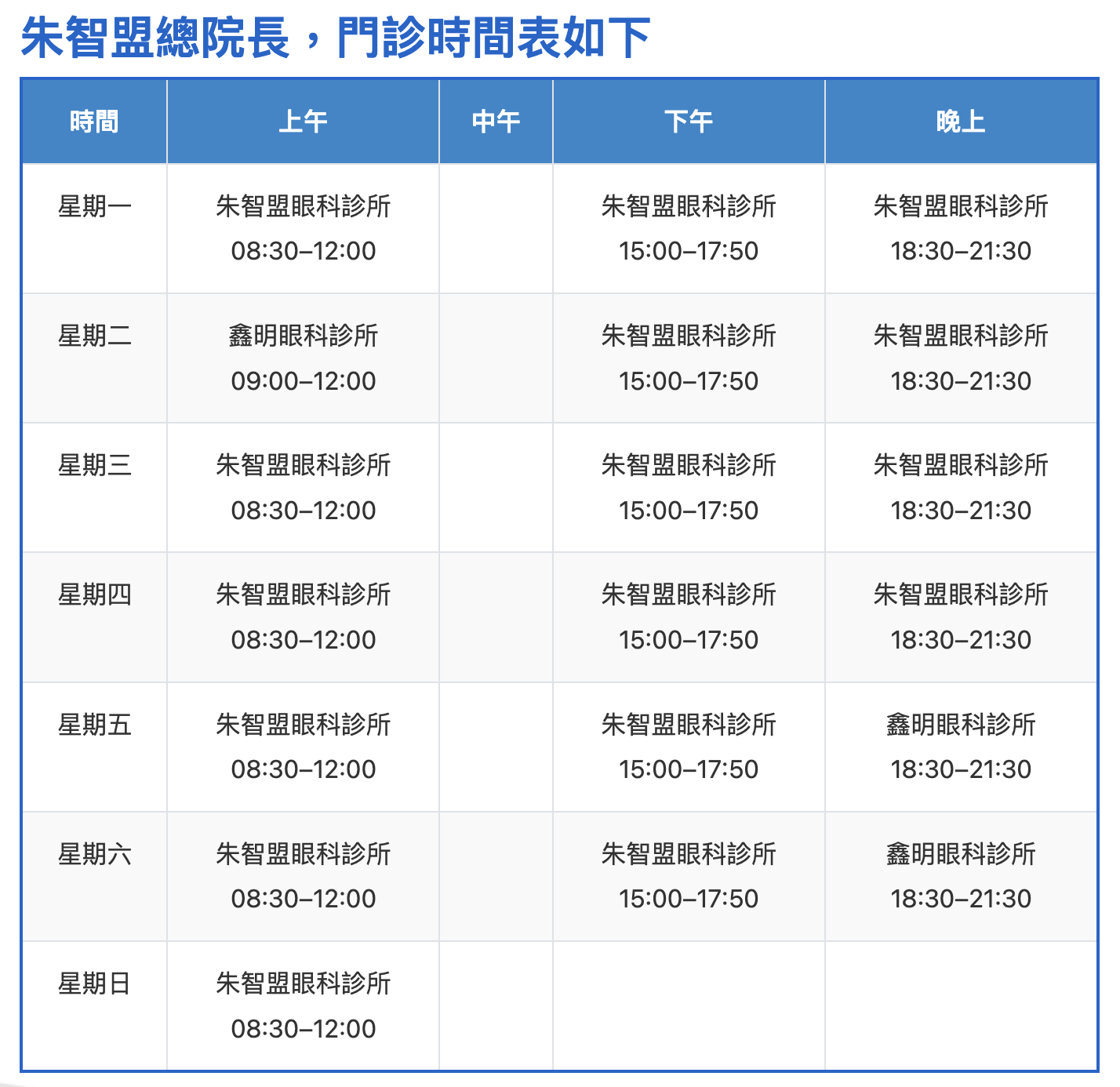 專業治療項目一般眼疾、雷射近視手術、小切口白內障手術、 眼瞼整型、青光眼治療、視網膜治療、角膜塑型片、白內障新知、老花眼矯正、兒童視力保健、角膜塑型片、飛蚊症雷射治療、飛秒雷射水晶體屈光手術、免散瞳超廣角眼底攝影及OCT、M22乾眼症瞼板線脈衝光、淚液檢測、兒童近視眼軸長追蹤、飛秒前導波近視老花屈光手術、全準分子雷射、全準七次元雷射、飛秒七次元雷射、SMART全飛秒PRO近視雷射