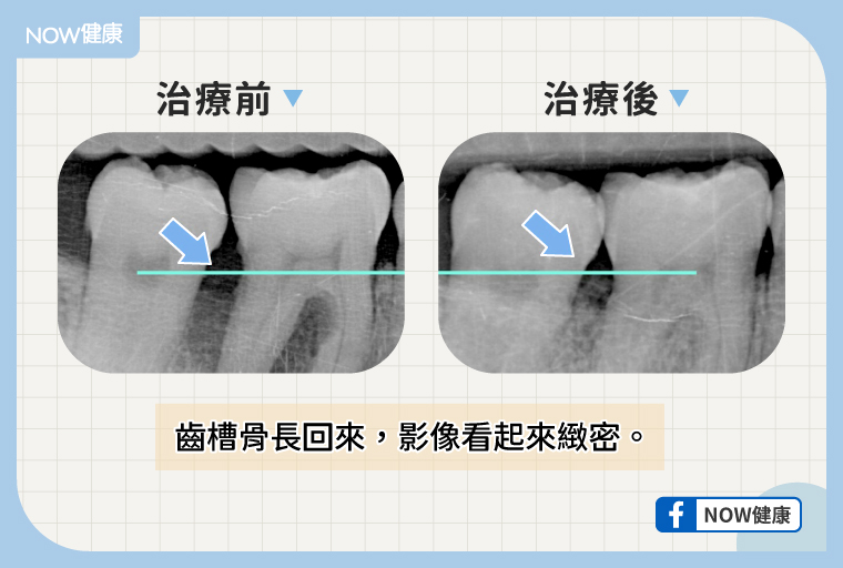 ▲透過牙周再生手術後,後續回診追蹤也都呈顯穩定的恢復。(圖/NOW健康製作;圖片來源/鄭聖達醫師提供)
