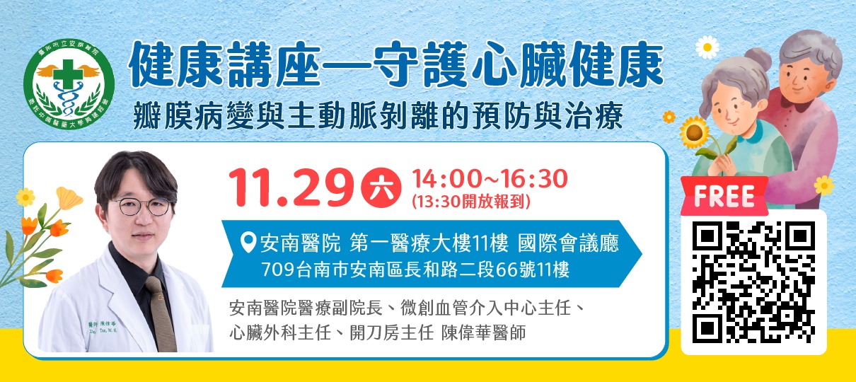 11/29(六)活動名稱:守護心臟健康,瓣膜病變與主動脈剝離的預防與治療
