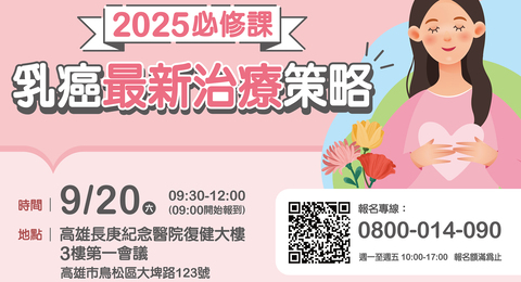 高雄長庚醫院邀請乳癌專家分享乳癌治療新趨勢,及術後重建等實用課程。