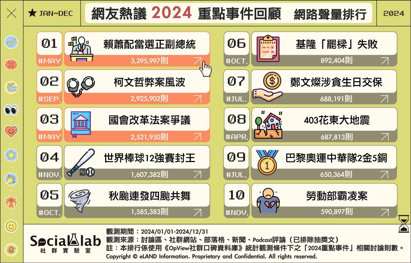 ▲2024年度Top10話題的網路聲量表現。(圖/《Social Lab社群實驗室》提供)