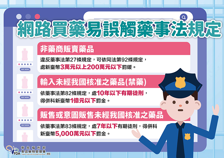 ▲隨著網購普及,民眾得小心別觸犯藥事法相關規定。(圖/食藥署提供)