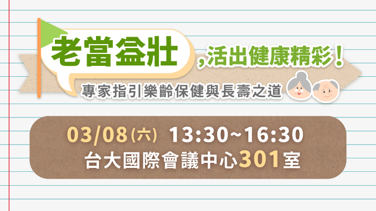 活動時間從下午1點半至4點半,下午1點開放入場,地點位於台大醫院國際會議中心301室(台北市徐州路2號3樓)。名額有限,歡迎有興趣的民眾把握機會,儘速完成報名。