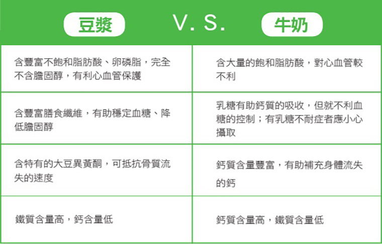 ▲牛奶較營養,還是豆漿比較厲害?1張圖秒懂優缺點。(圖/常春月刊提供)