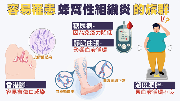 ▲容易罹患蜂窩性組織炎的族群。(圖/振興醫院提供)
