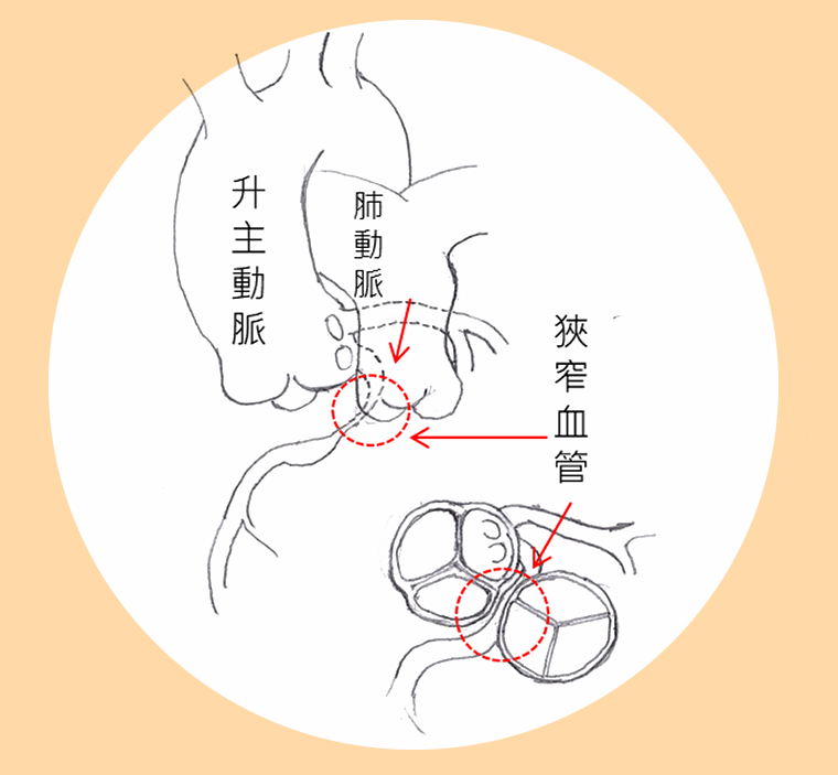原因就在冠狀動脈的位置出了問題,正常右冠狀動脈開頭的位置應該在大動脈根部前方出來,但病患的右冠動脈卻是從左側分出,途經肺動脈與大動脈的間隙(約1.5公分的距離),之後又回到原本右冠狀動脈的正常位置,並將動脈含氧血供應給右心室與傳導神經。