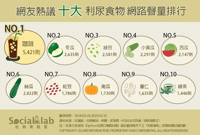 ▲網友熱議10大利尿食物。(圖/《Social Lab社群實驗室》提供)