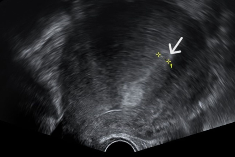 ▲透過超音波檢查,發現子宮內膜增生異常的情形。(圖/台北慈濟醫院提供)