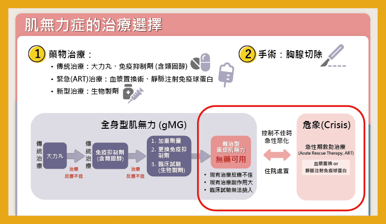 ▲肌無力症的治療選擇。(圖/台灣神經免疫醫學會提供)