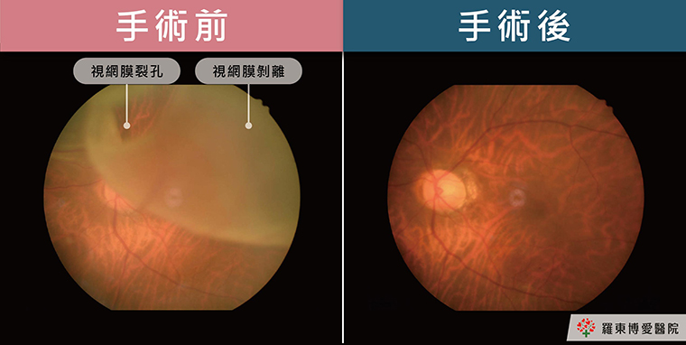 ▲視網膜剝離術前術後對比圖。(圖/羅東博愛醫院提供)