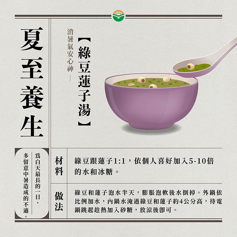 ▲夏至來臨,中醫師推薦「綠豆蓮子湯」消暑氣安心神。(圖/王維瀚中醫師提供)