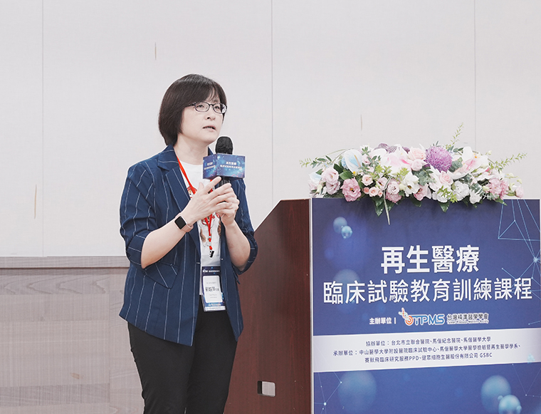 ▲衛生福利部醫事司司長劉越萍以「我國推動細胞及基因治療臨床試驗之現況與未來展望」為題發表專題演講,期盼透過產官學合作推進再生醫療發展,強化臨床試驗執行能量。(圖/台灣精準醫學學會提供)