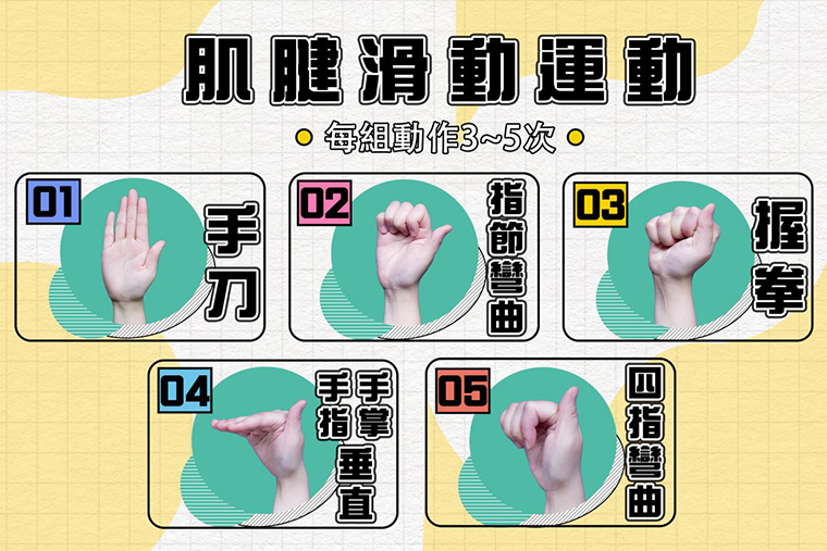▲肌腱滑動運動可預防腕隧道症候群或緩解症狀。(圖/台北慈濟醫院提供)