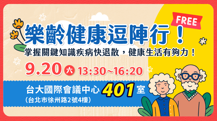 活動時間從下午1點半至4點半,下午1點即開放入場,講座地點位於台大醫院國際會議中心401室(台北市徐州路2號4樓)。名額有限,歡迎有興趣的民眾把握機會,儘速完成報名。